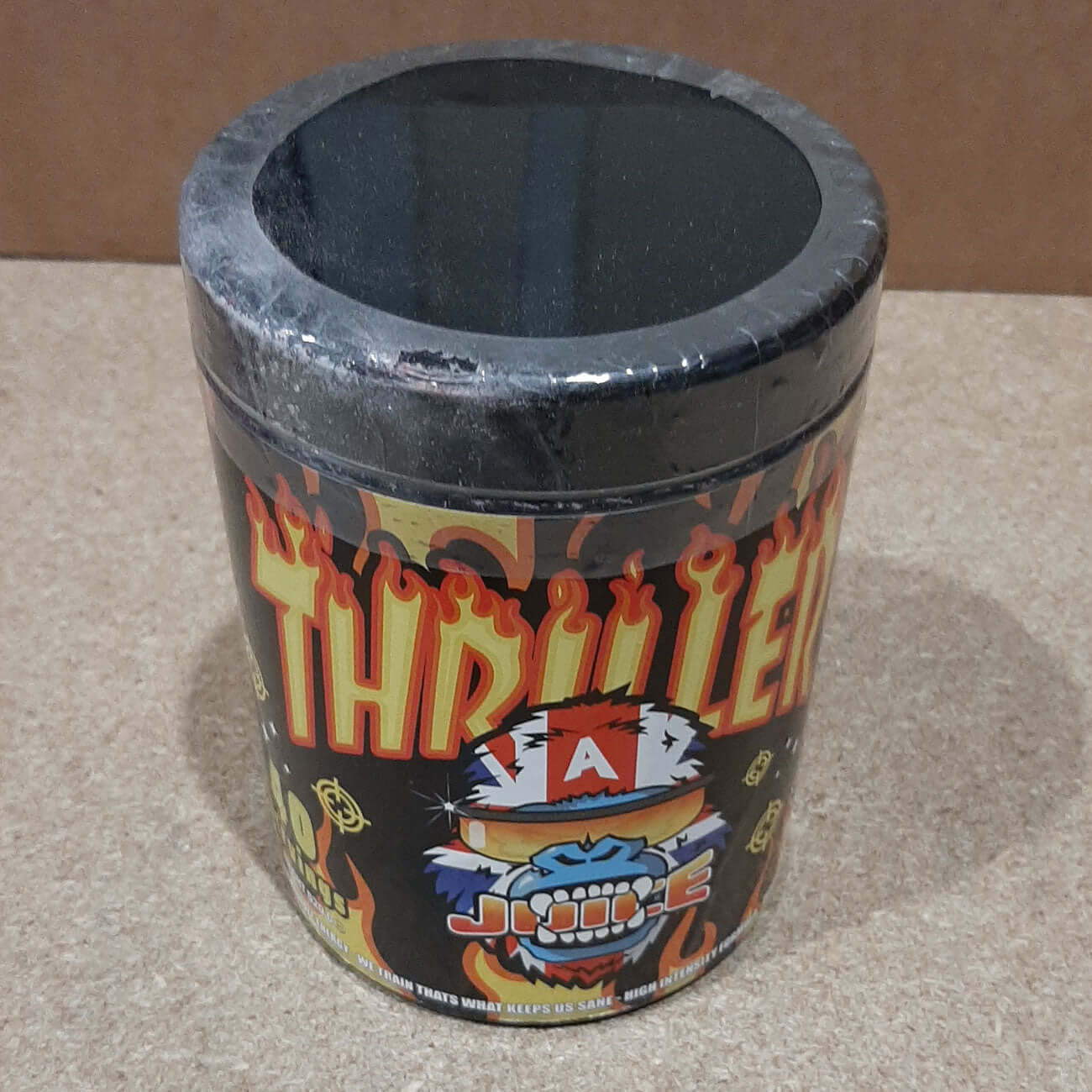 This unit of Thriller Juice is reduced to clear due to a very small amount of powder leakage and damage to the outer seal. Please view images to confirm you are happy to buy it in this condition before purchasing. No returns will be accepted for the reason of the condition of the tub on this item.