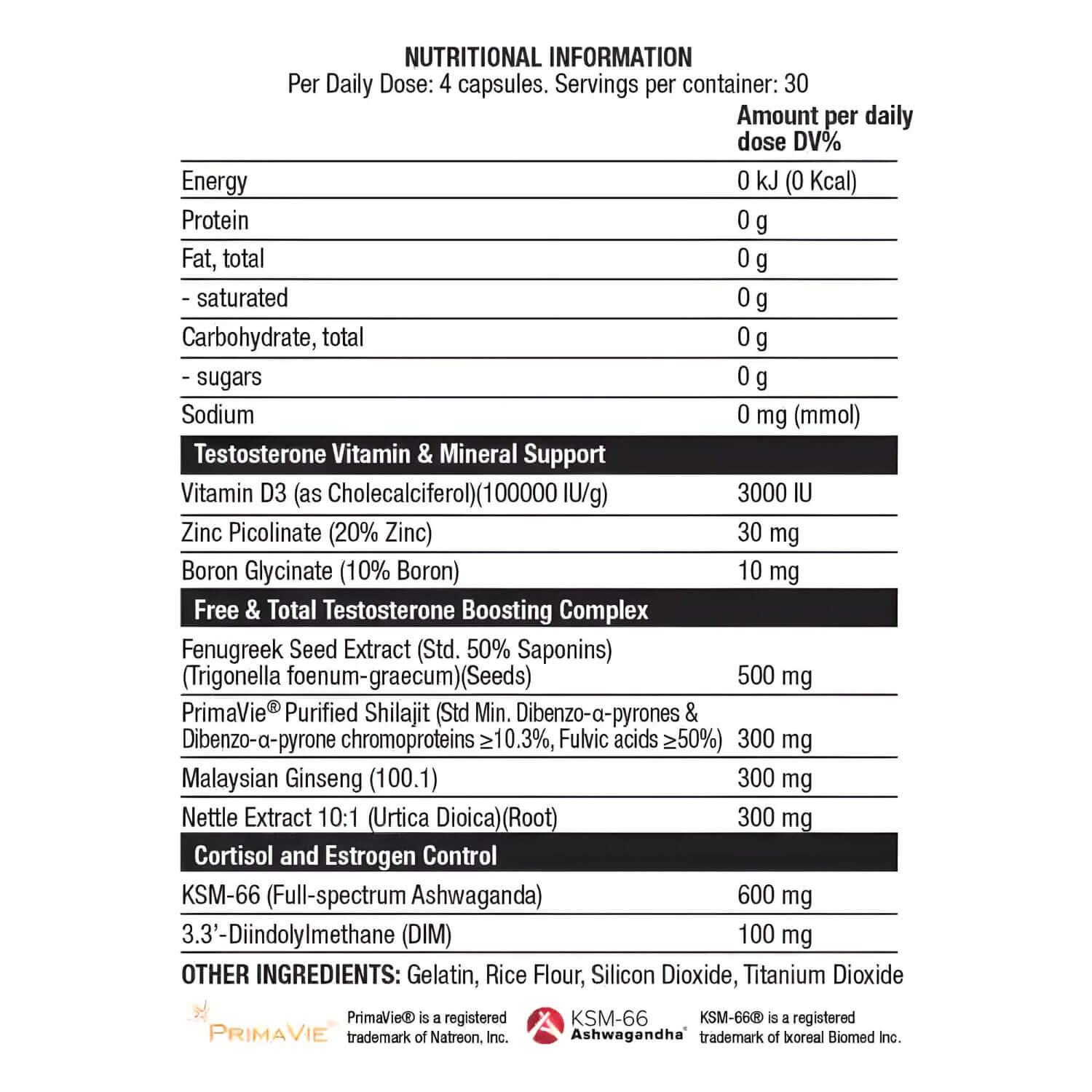 Chaos Crew Alpha Test features a synergistic blend of ingredients including Vitamin D3, Zinc Picolinate, Boron Glycinate, Fenugreek, Shilajit, Ginseng, Nettle Extract, Ashwaganda and DIM.