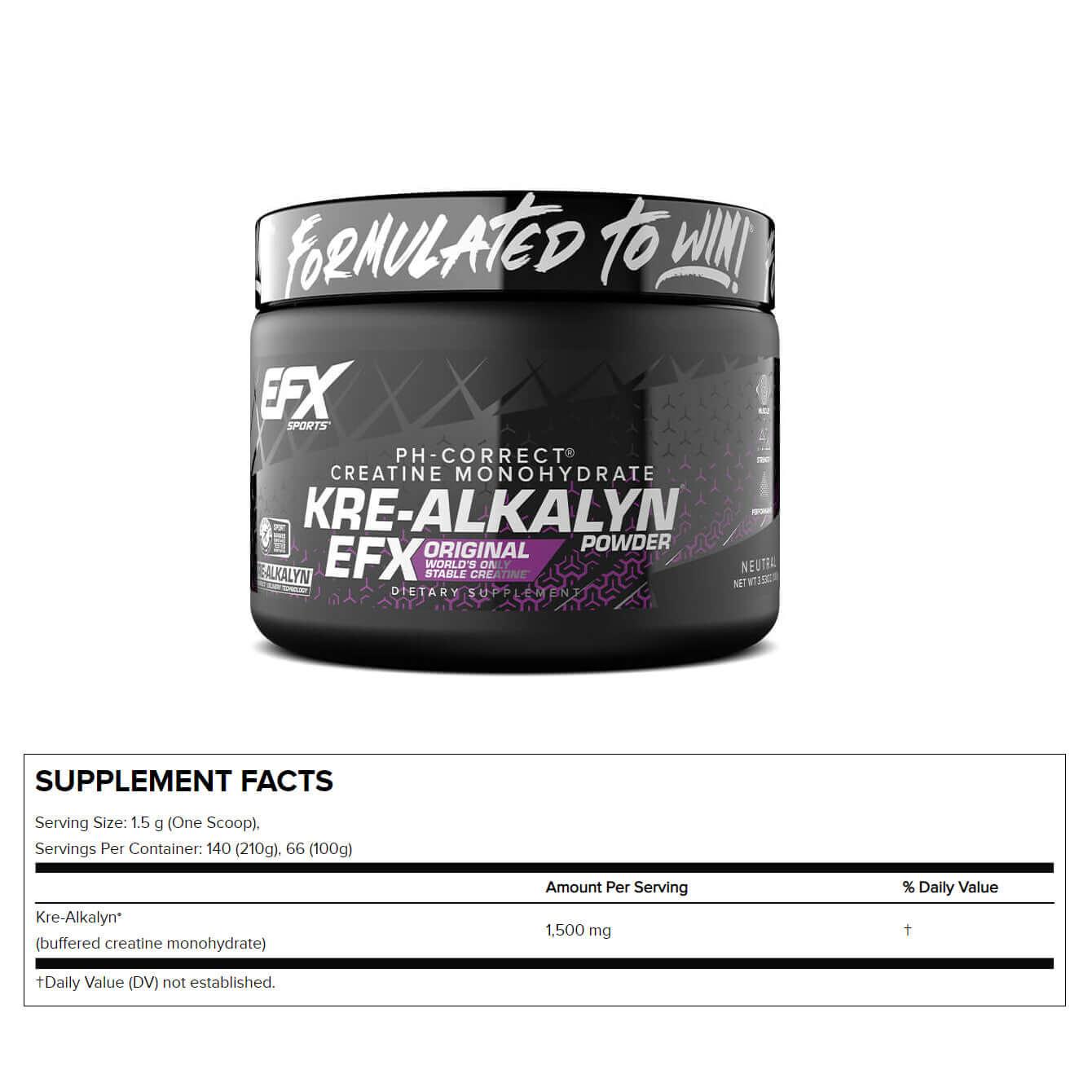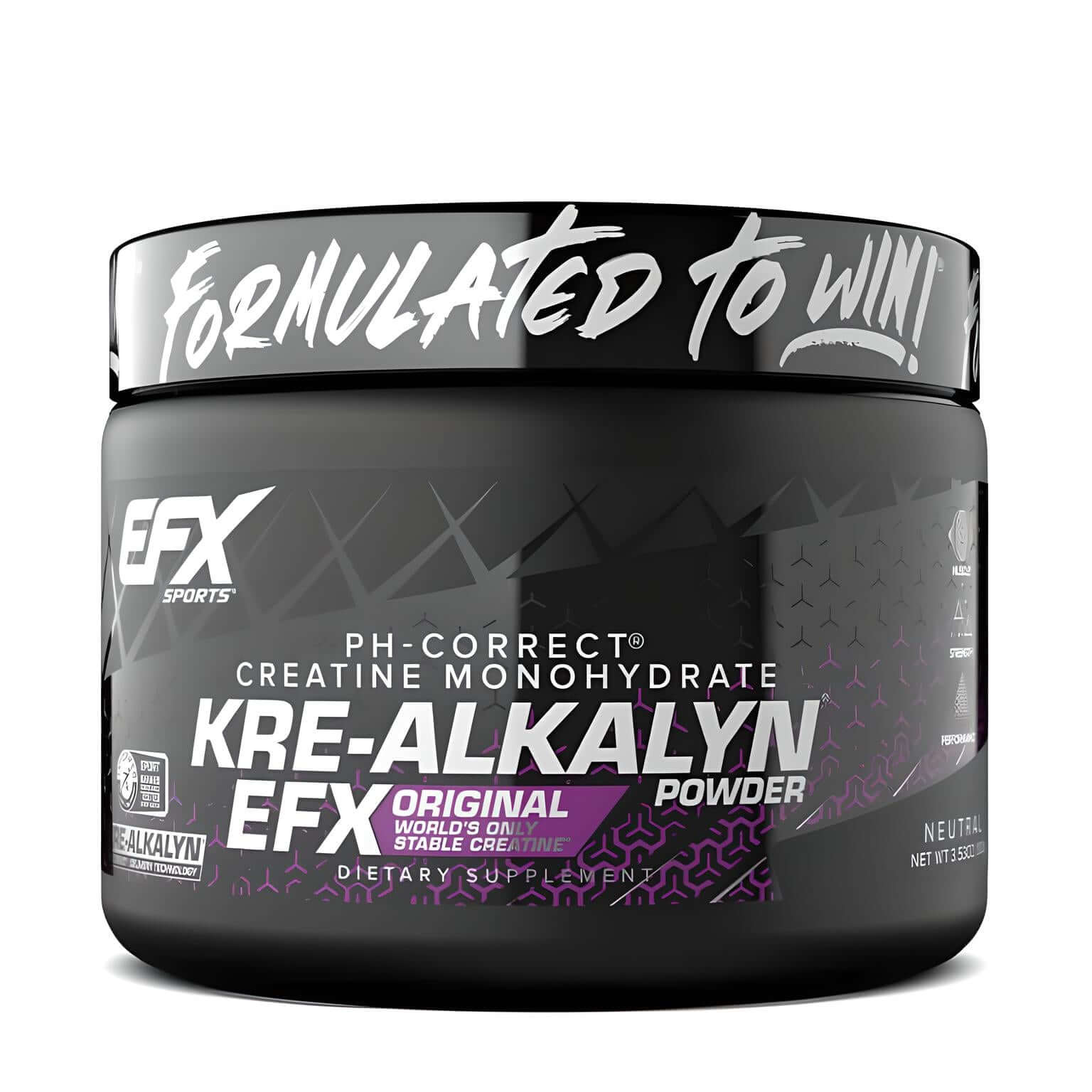 Unleash your peak performance with Kre Alkalyn EFX Creatine Powder! This 99.9% pure creatine monohydrate, invented by Dr. Jeff Golini of EFX Sports, is the ONLY creatine with a pH of 12-14. Get ready to experience enhanced strength, power, and muscle growth without the downsides!