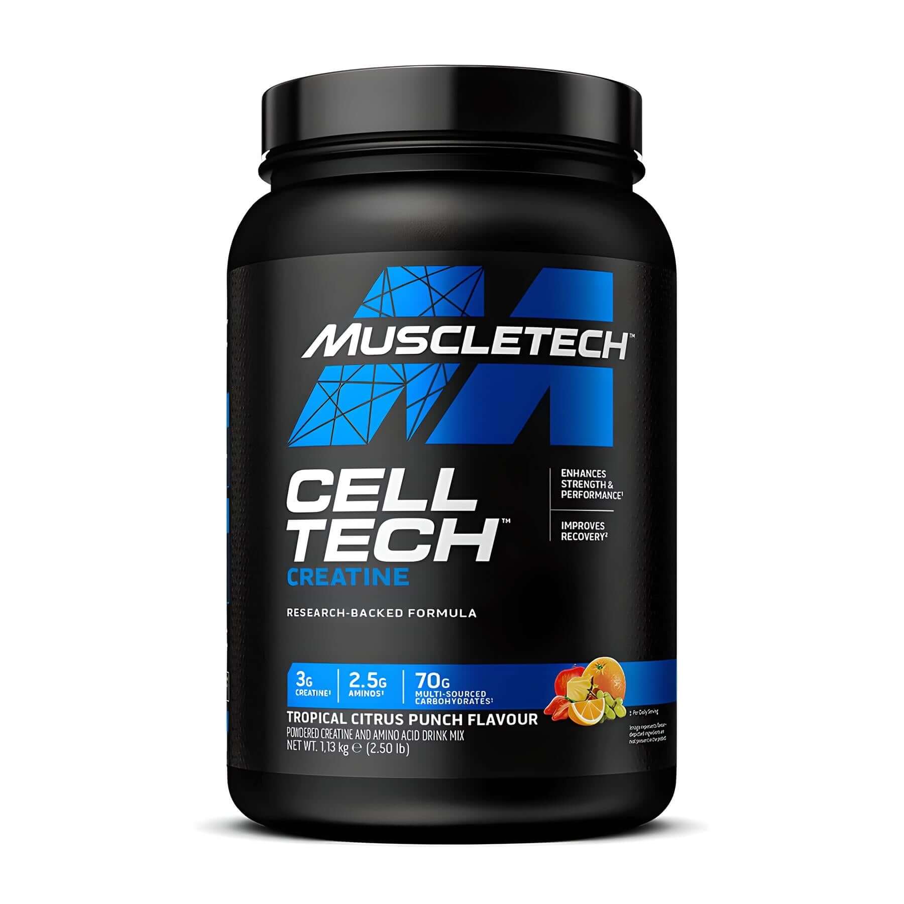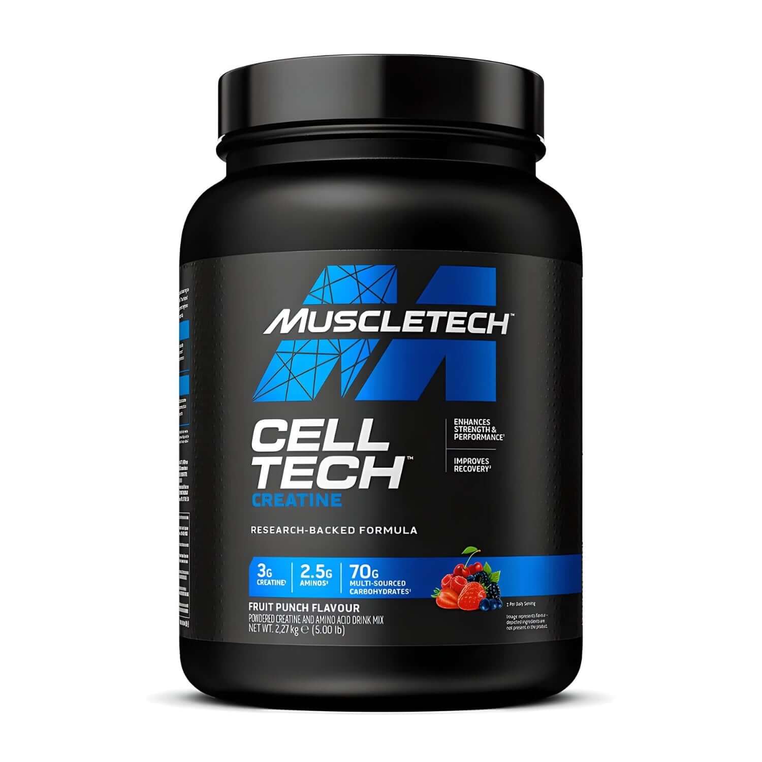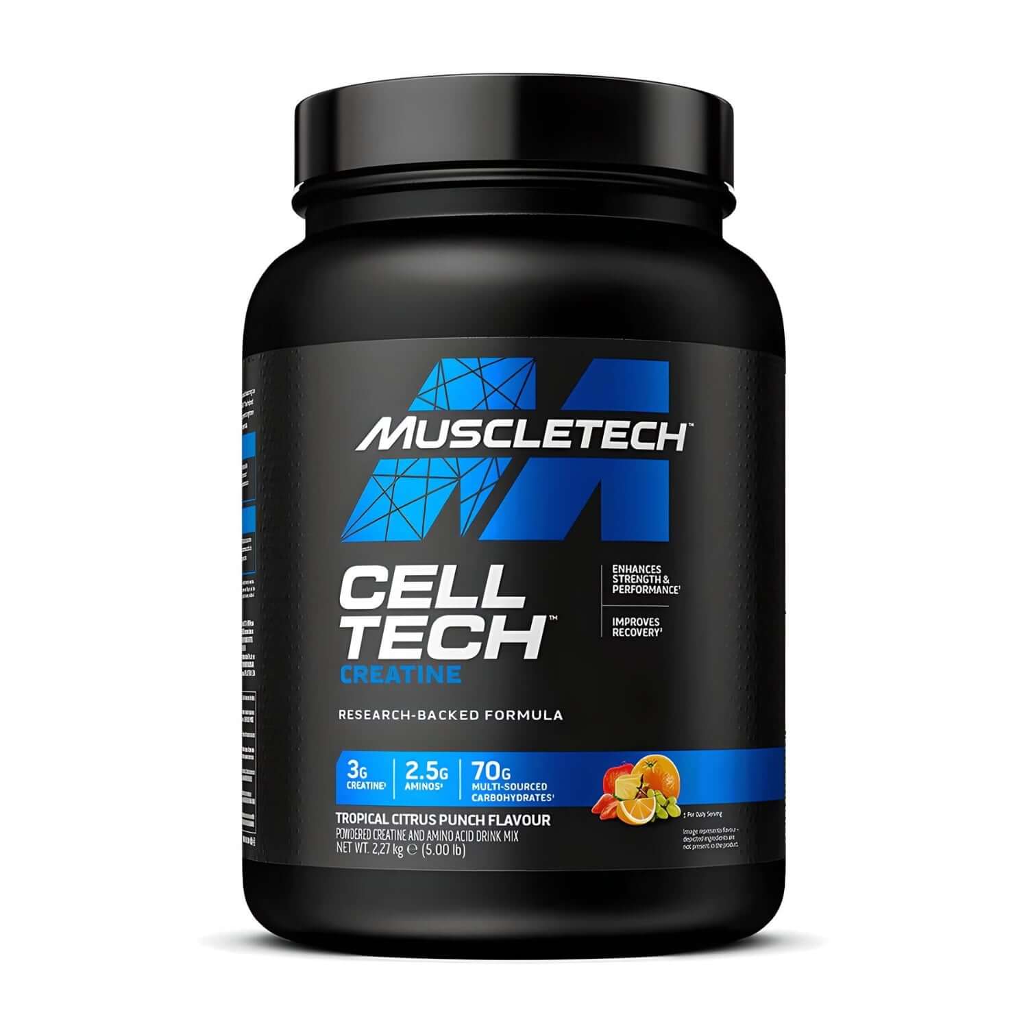 Cell-Tech is available in refreshing Fruit Punch and Tropical Citrus Punch flavors to suit your taste. Choose from the 1.13kg (2.5lb) or 2.27kg (5lb) sizes to match your training regimen.