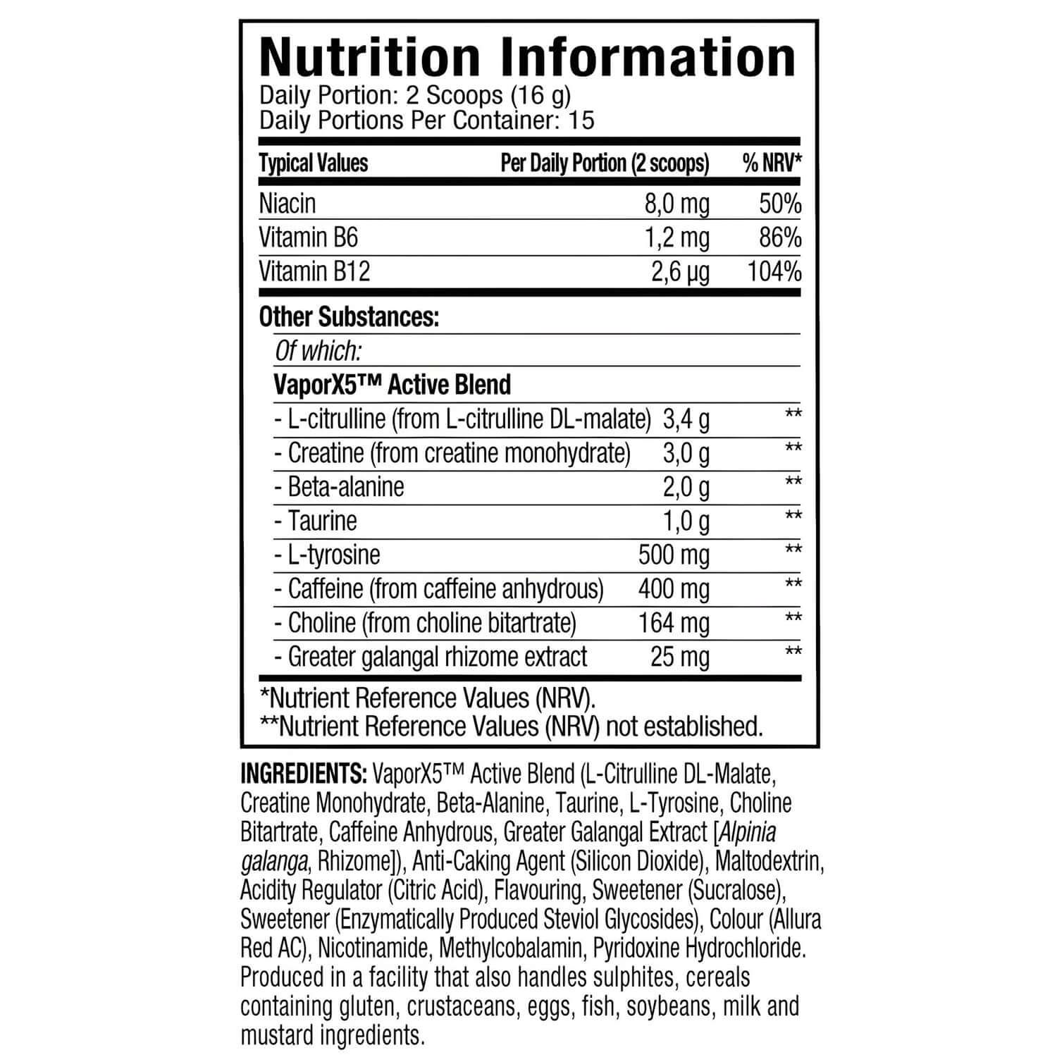 Fuel your ambition, power your performance. Don't settle for ordinary; choose MuscleTech Vapor X5 and unlock your full potential. Available in Blue Raspberry and Fruit Punch, each 247g container is packed with the ingredients you need to crush your workout and achieve serious results. Order yours today and get ready to experience the difference!