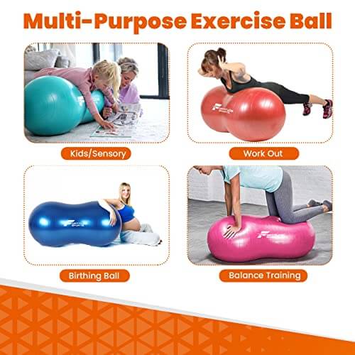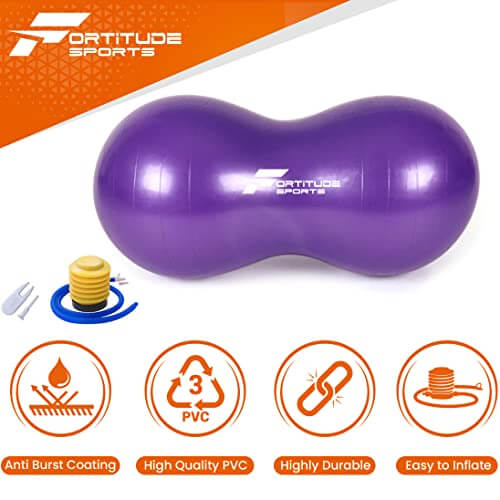 Fortitude Sports Peanut Swiss Ball is a peanut shaped exercise ball made from high quality PVC with a non slip surface and anti burst coating. Highly versatile, this exercise ball is great for many uses such as yoga, pilates, crossfit, balance training and physical therapy. It is also easy to inflate and comes with a foot pump included.