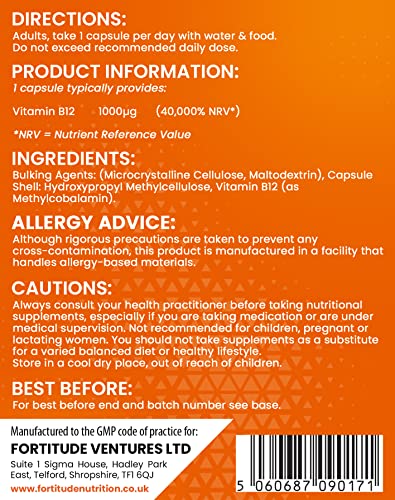 Ingredients: Vitamin B12 (as Methylcobalamin), Bulking Agents: Microcrystalline Cellulose, Maltodextrin, Capsule Shell: Hydroxypropyl Methylcellulose