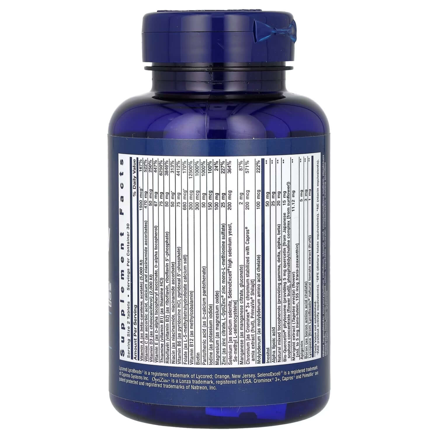 Life Extension Two-Per-Day Tablets is a daily blend of essential vitamins, minerals and other nutrients (such as alpha lipoic acid, Bio Quercetin and Lycopene).