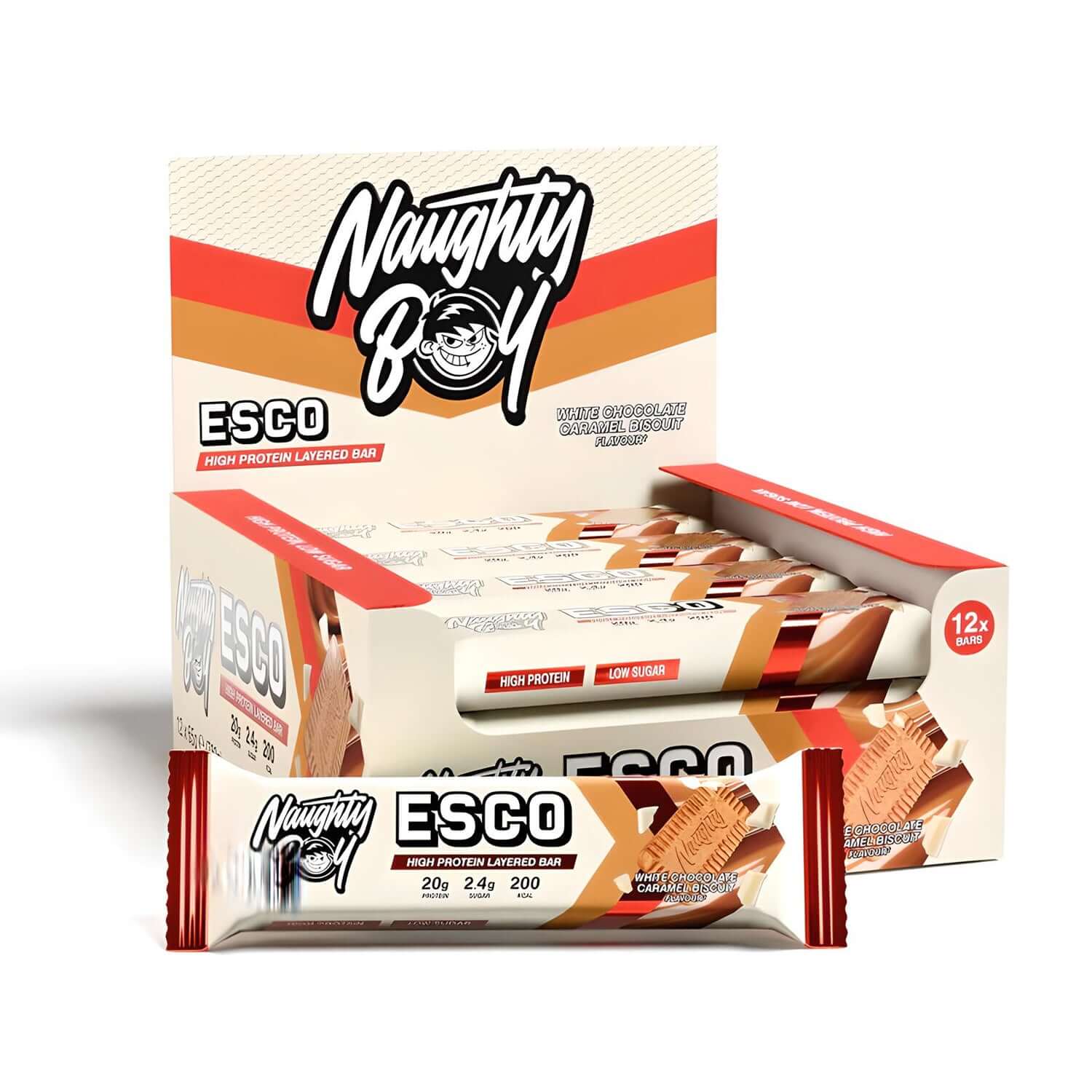 Naughty Boy Esco Bars offer the perfect balance of taste and nutrition. They're high in protein, low in sugar, and come in two irresistible flavours. Plus, they're incredibly convenient, making them the perfect on-the-go snack for anyone who wants to indulge without the guilt. Grab a box today and experience the difference!