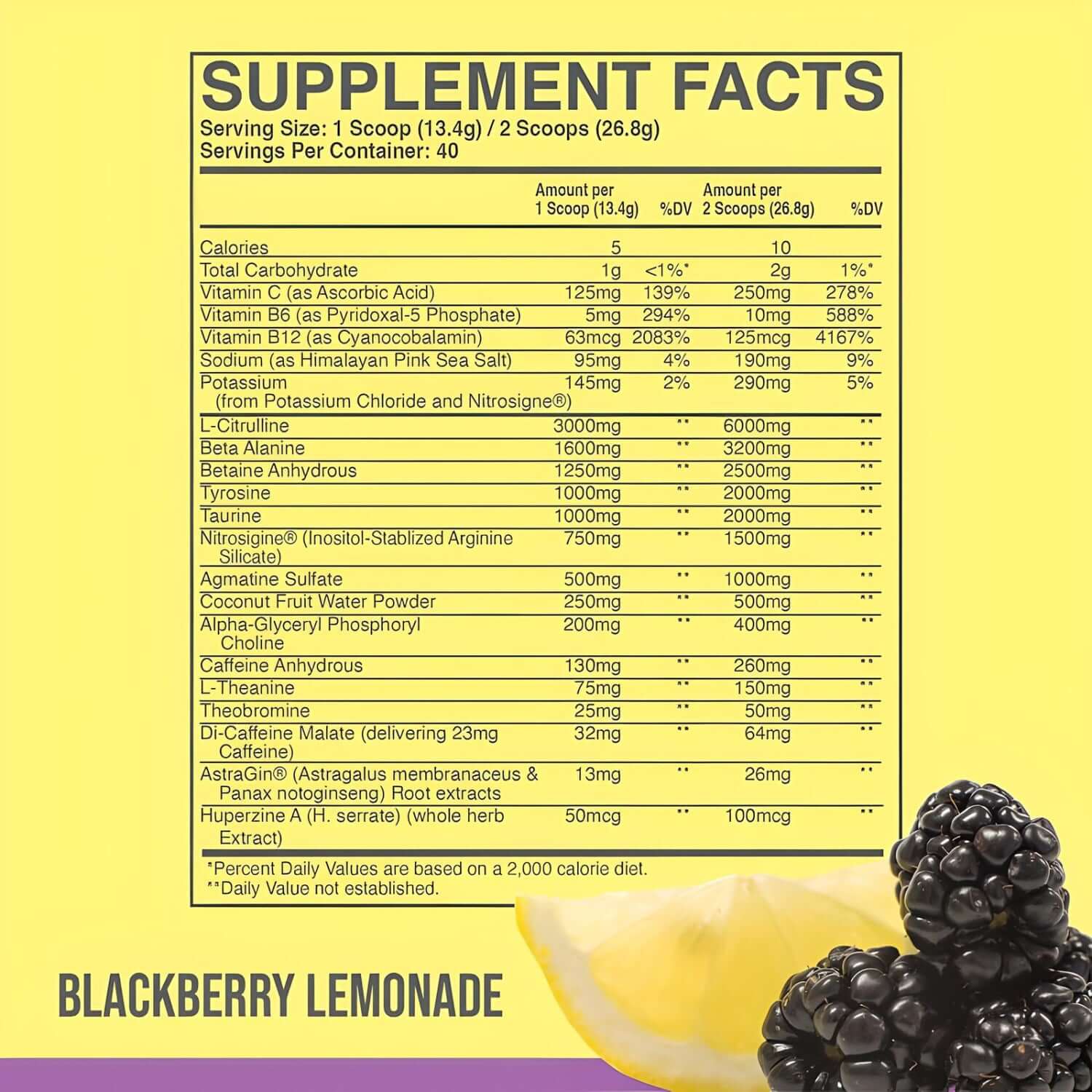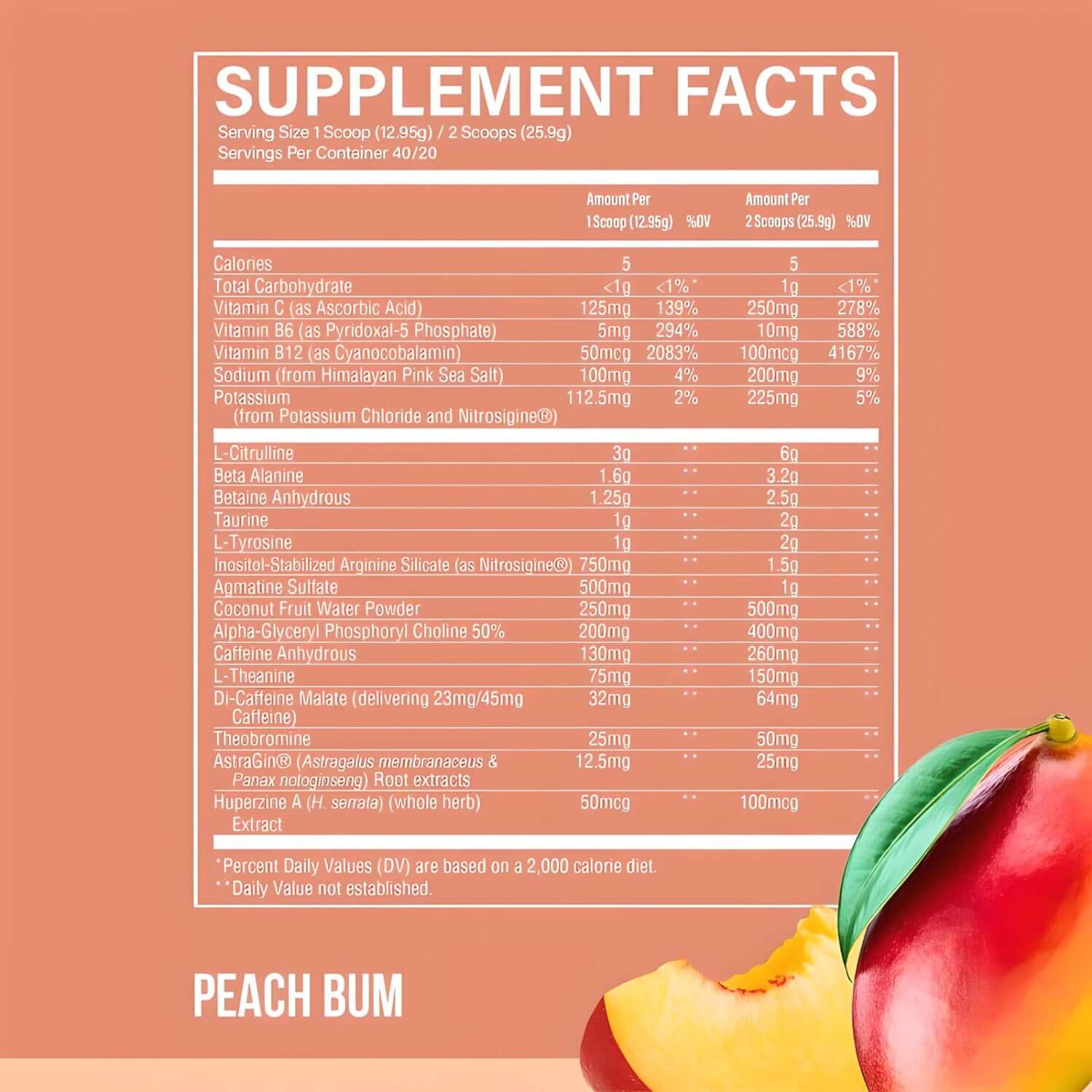 Delicious Flavours: Enjoy mouth-watering flavours like Blackberry Lemonade, Peach Bum, and Raspberry Lemonade that make pre-workout a treat.
