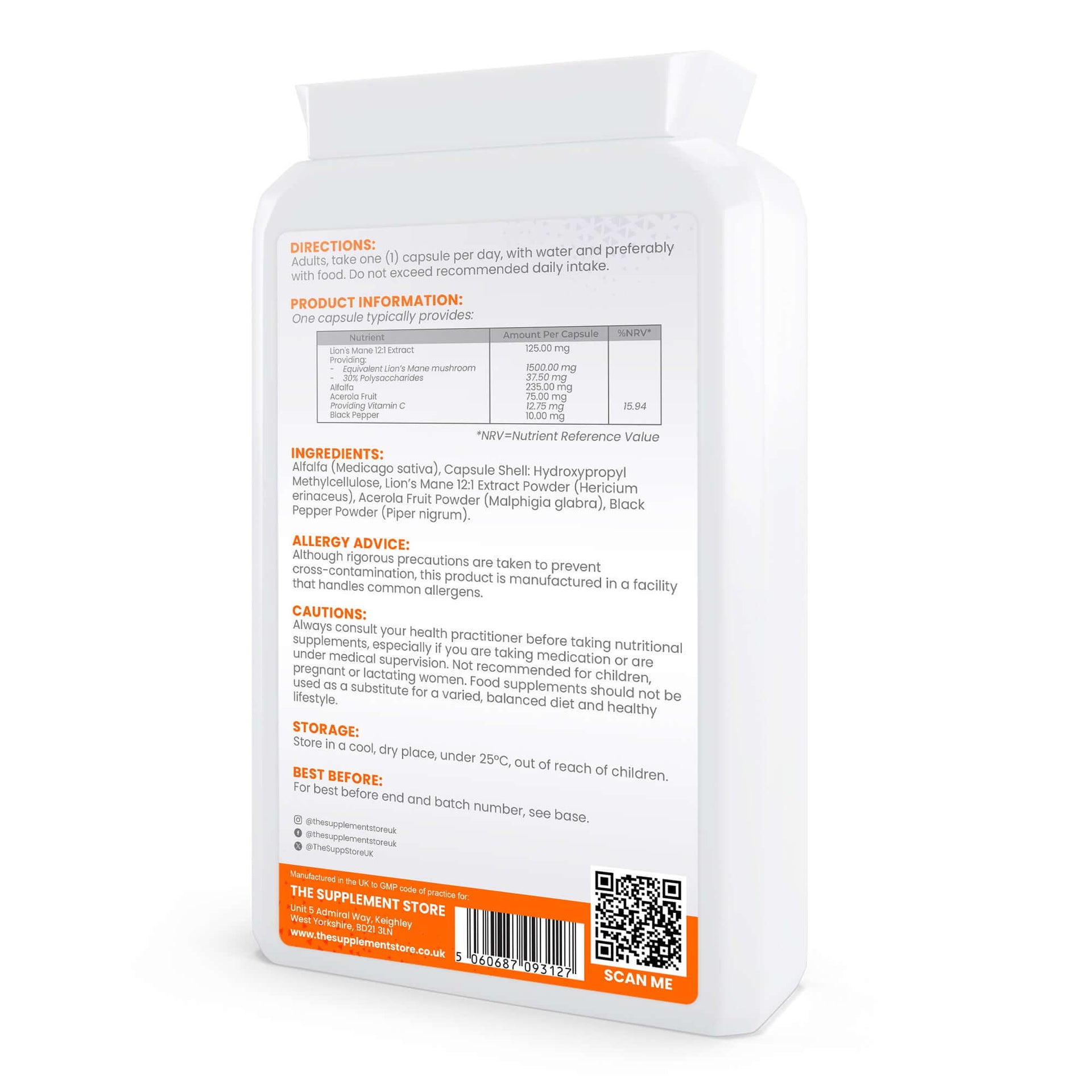 The Supplement Store Lion’s Mane Extract Capsules provide a convenient way to include this widely used mushroom extract in your daily routine. Combined with acerola and black pepper, this formula is designed for easy integration into a balanced approach to wellbeing.