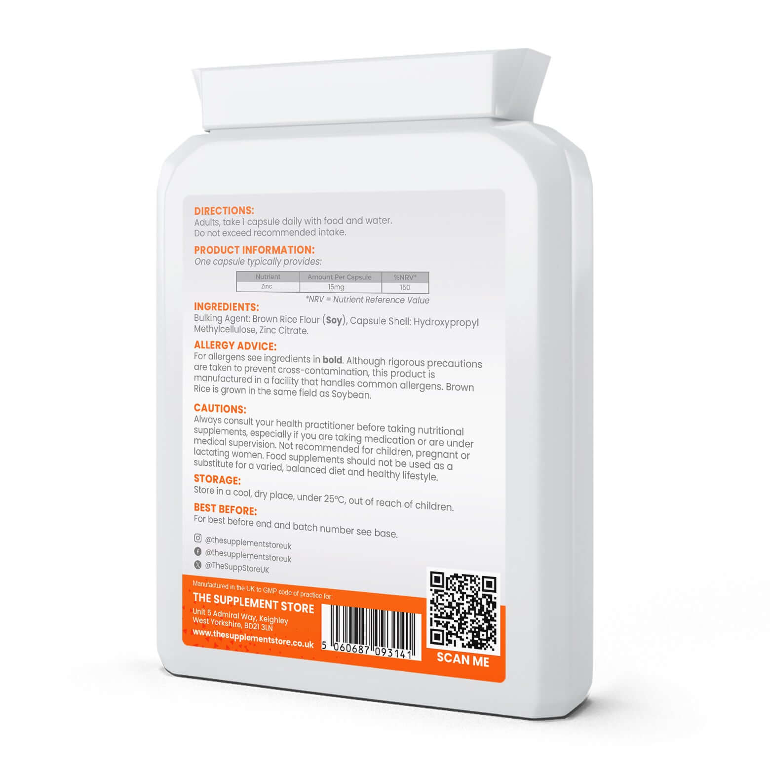 The Supplement Store Zinc 15mg Capsules provide a simple and convenient way to support your daily intake of zinc. As an essential mineral, zinc plays a key role in a range of normal bodily functions and is commonly included in daily supplement routines.